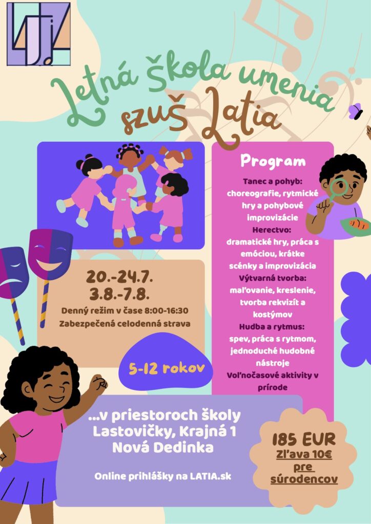 s radosťou vás pozývame na 2. ročník umeleckého letného tábora, kde vaše deti zažijú nezabudnuteľné chvíle plné hudby, tanca, herectva a kreatívneho tvorenia! 🌟